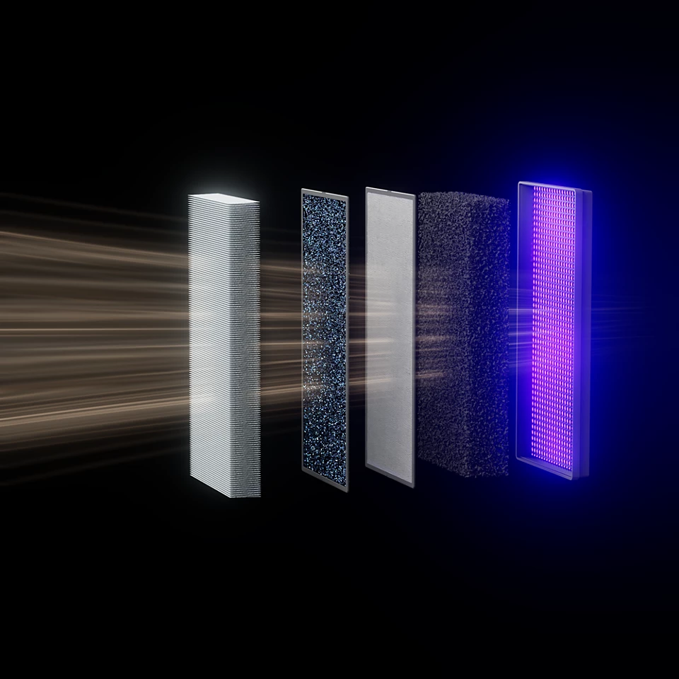 سیستم فیلتر / فناوری: در مدل AC9008/00 از سیستم ۵ لایه تصفیه استفاده شده است: “۵-level deep purification system” (۵ سطح تصفیه) برای حذف آلودگی‌ها و بخصوص فرمالدهید.